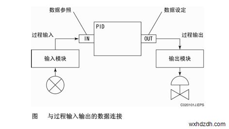 和過程輸入輸出進行的數據連接是指在功能塊的輸入輸出端子上對模擬輸入輸出、接點輸入輸出等的過程輸入輸出進行的輸入輸出連接。因過程輸入輸出沒有輸入輸出端子,所以不能進行端子間的連接。下面是和過程數據進行數據連接的示例。