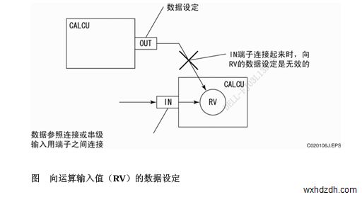 在運算塊中,在將運算輸入值(RV、RVn)作為常量使用時,可以向功能塊的運算輸入值(RV、RVn)進行數據設定。但是這個時候,如果在與運算輸入值(RV、RVn)對應的輸入端子上指定了數據參照或端子間連接(串級輸入)的話,那么使用輸入端子的輸入動作就會優先。